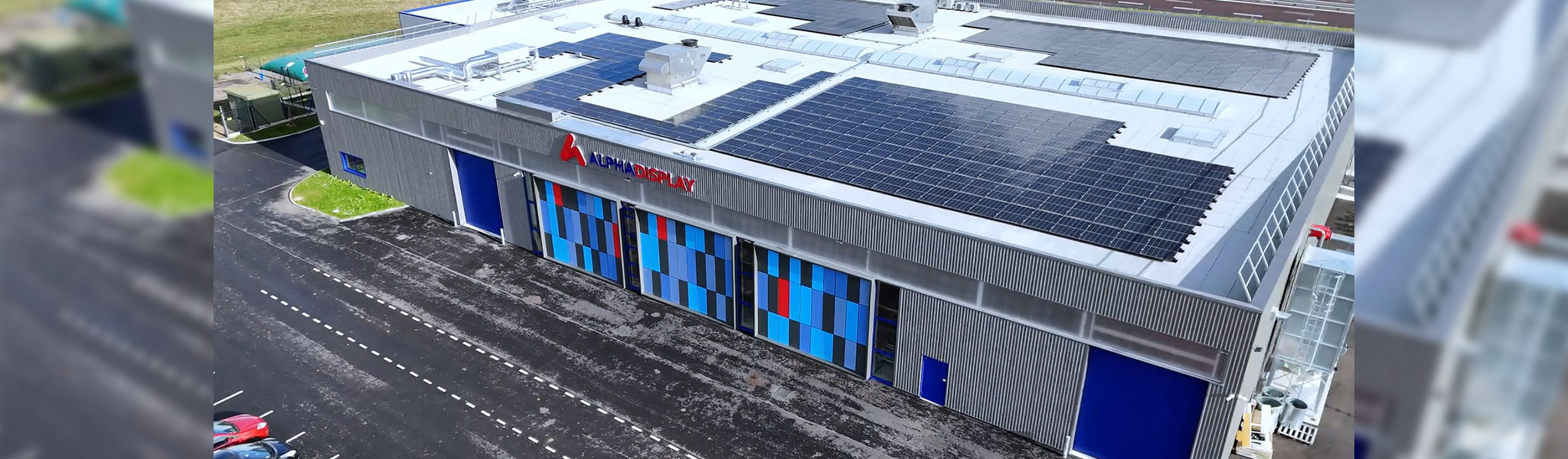 Depuis mai 2025, l’équipe Alpha Display est installée dans ce nouvel entrepôt de 3500 m² ultra moderne, à côté de Falaise.